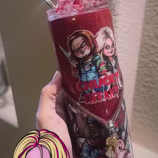 20 oz Chucky and Tiffany Halloween Glitter Tumbler