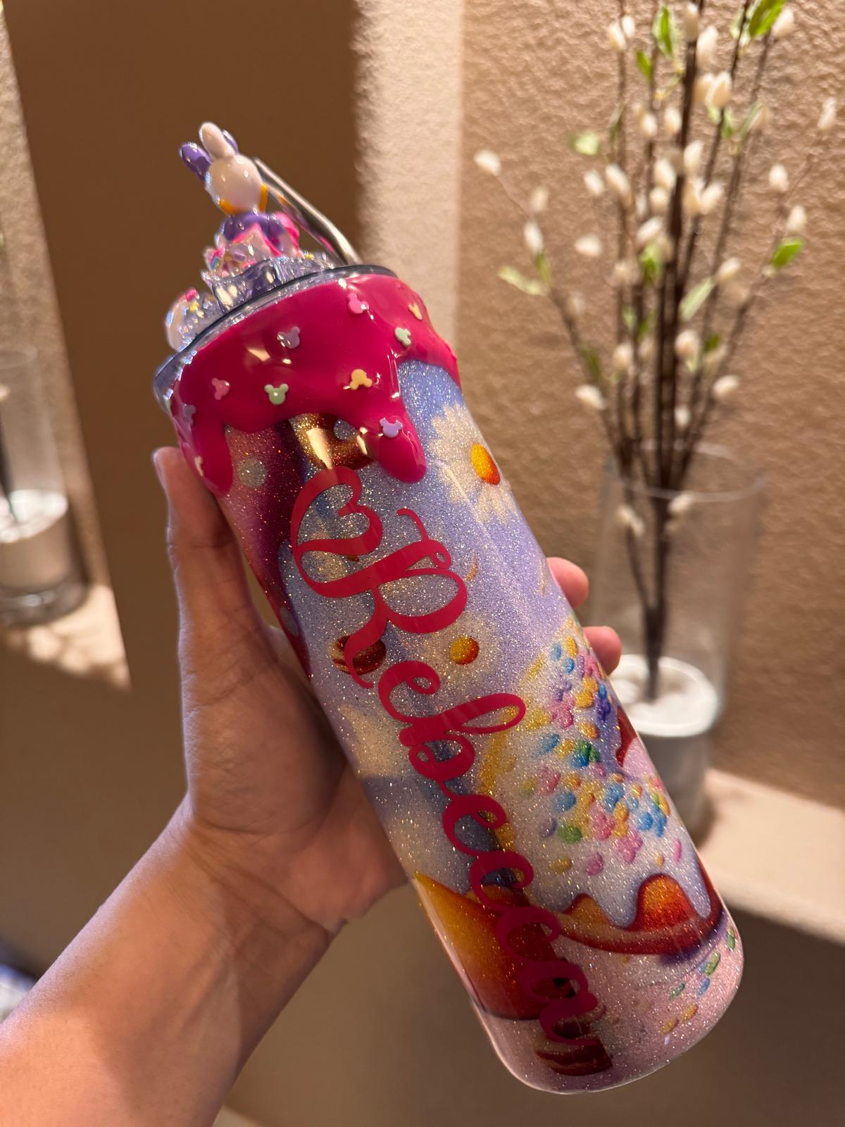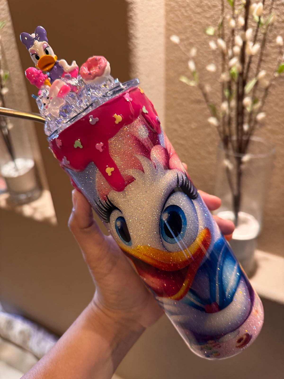 Embrace the charming delight of Disney with this 20 oz Daisy Duck Glitter Tumbler, perfect for fans and collectors. Inspired by the iconic Daisy Duck from the Disney universe, this tumbler combines a dazzling, whimsical design with exceptional functionality. Its sparkling finish and vivid graphics bring a magical, cheerful vibe to every sip, making it a standout accessory for Disney enthusiasts.