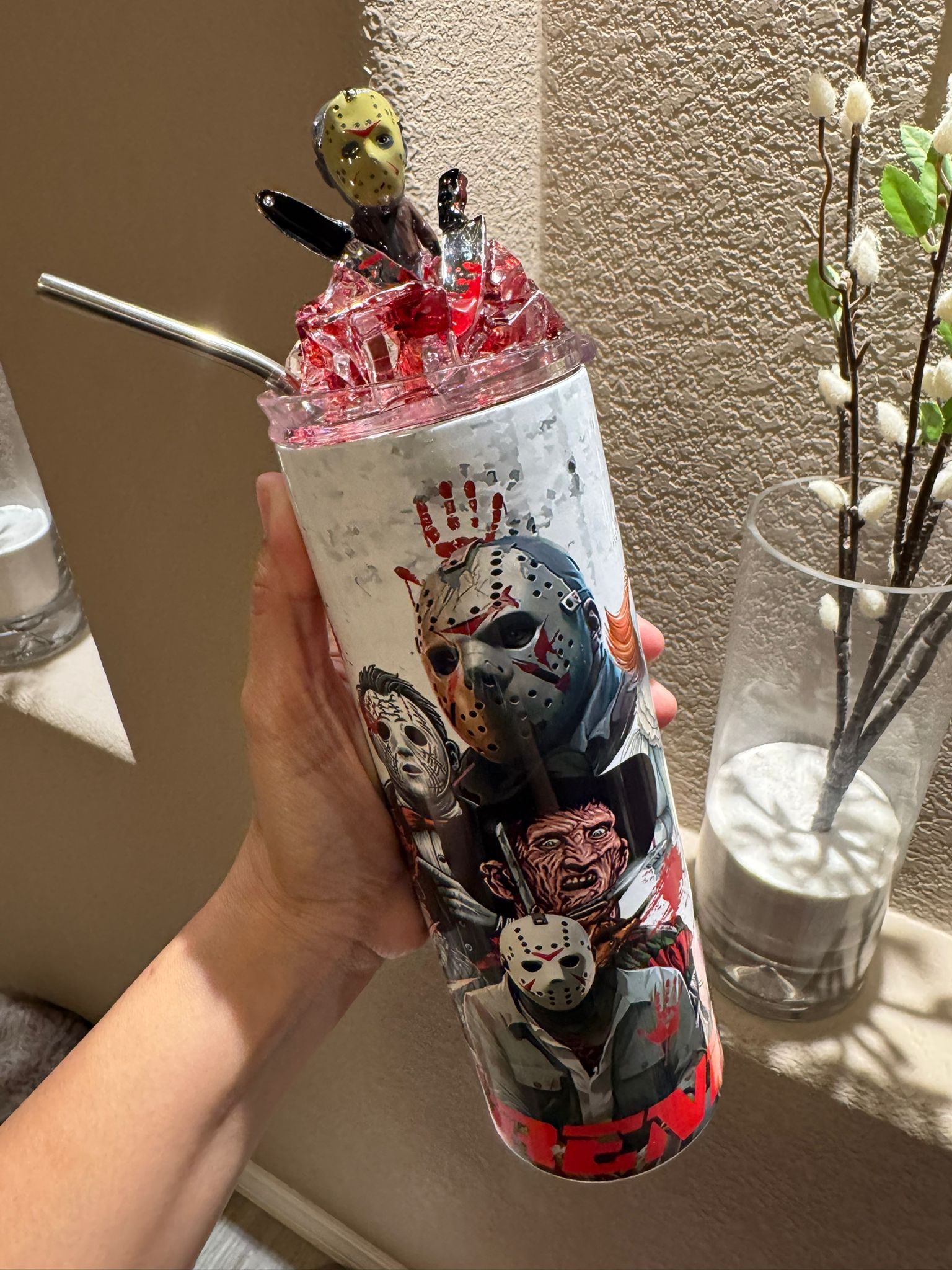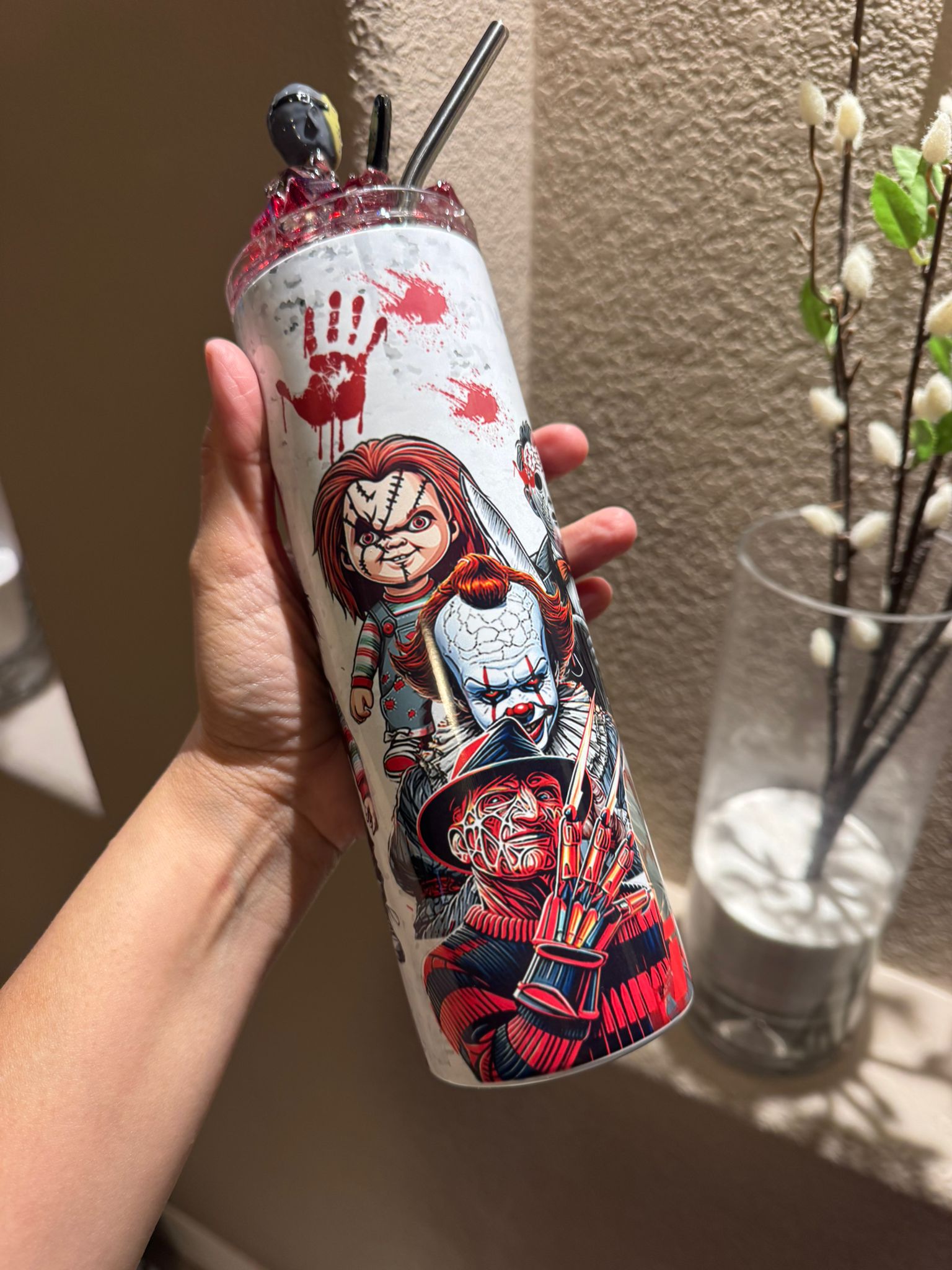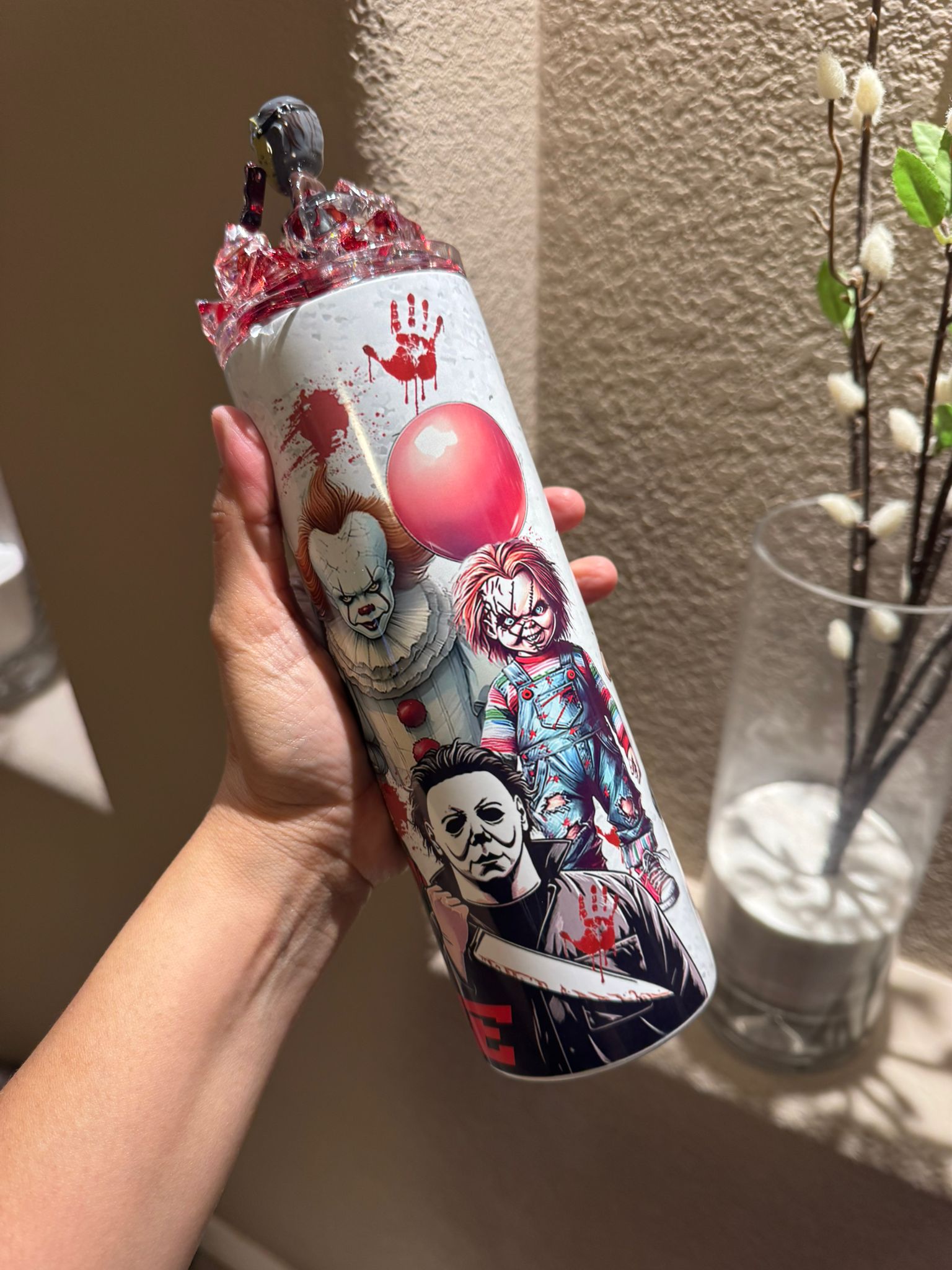 Spooky Glitter Finish: Enhanced with a shimmering glitter effect, blending eerie style with the thrilling allure of this horror-inspired tumbler.