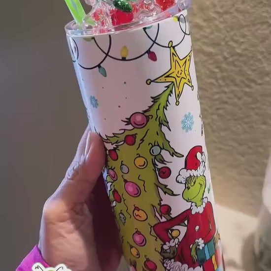 Embrace the charming delight of grinch with this 20 oz Grinch Tumbler, perfect for fans and collectors. Inspired by the iconic Snoopy, this tumbler combines a dazzling, whimsical design with exceptional functionality. Its sparkling finish and vivid graphics bring a magical, cheerful vibe to every sip, making it a standout accessory.