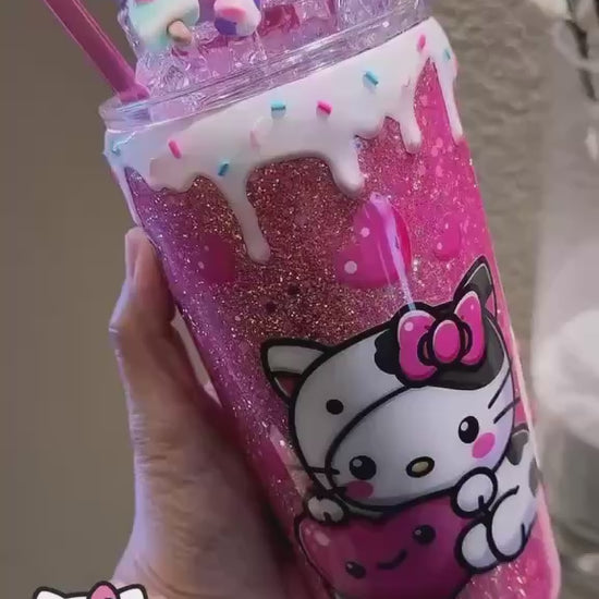 - Enchanting Glitter: A shimmering finish adds a magical touch, blending style with the delightful allure of this HELLO KITTY COW- themed tumbler.
