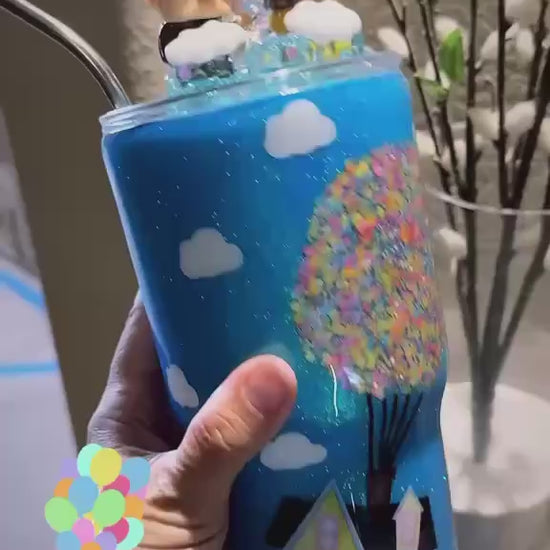 - Enchanting Glitter: A shimmering finish adds a magical touch, blending style with the playful allure of this UP Movie -themed tumbler.